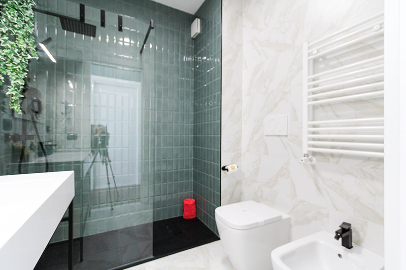 - Modern bathroom with a spacious shower and high-quality finishes.